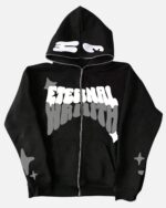 Men’s Star & Letter Printed Fleece Lined Zip-Up Hoodie