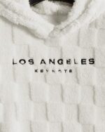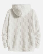 Made from knitted fabric with a slight stretch and a luxurious fuzzy texture, this hoodie offers unparalleled comfort. The white color adds a clean, fresh look that is versatile enough to pair with various outfits. Whether you’re dressing down for a laid-back day or layering up for extra warmth, this hoodie is a perfect addition to any casual wardrobe. For businesses, offering this piece can attract customers looking for high-quality, comfortable clothing.